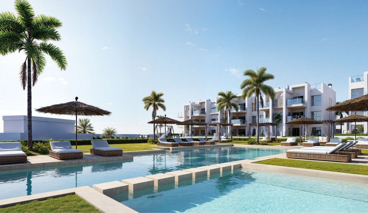 Choose from stylish apartments, ground-floor properties with private gardens, or penthouses with spacious solariums. Each home offers 2 or 3 bedrooms and 2 bathrooms, created to deliver comfort, functionality and modern Mediterranean living.